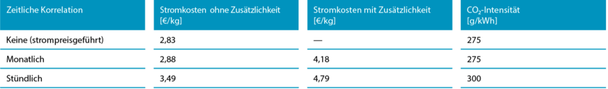 Wie die erste Tabelle zeigt, ist das Zusätzlichkeitskriterium der größte Kostentreiber. Und die stündliche Korrelation verschlechtert sowohl die Kosten als auch die systemische CO2-Wirkung.