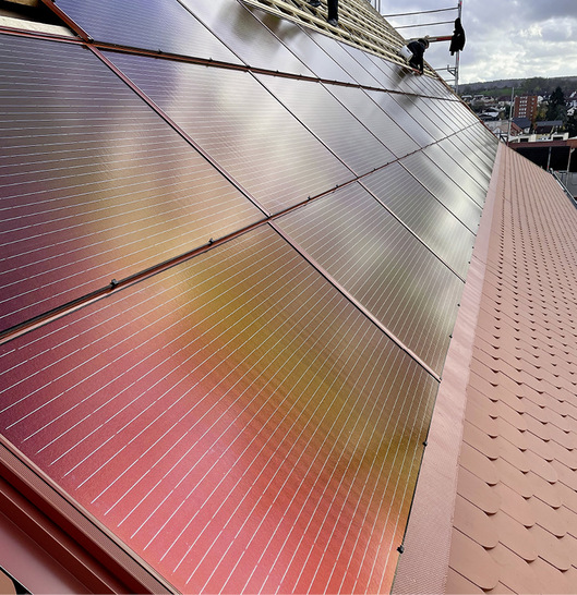 Ein Turnhallendach in Eppingen zeigt, wie eine Solaranlage dezent in der Gebäudehülle verschwinden kann. Die BIPV-Anlage verfügt über 66 Kilowatt und produziert mindestens 90 Prozent des Stroms, den eine klassische Solarstromanlage mit unbeschichteten Gläsern erzeugt.
