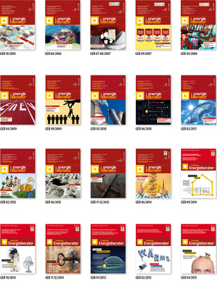 20 Jahre GEB, zehn Ausgaben pro Jahr – da kommen so einige Titelbilder zusammen. Sie alle erzählen so lebhaft wie bildhaft den Wandel der Zeitschrift, aber auch des Berufsbildes. Auf dem allerersten Cover vom Oktober 2005 visualisierten CD-Scheiben und eine Lupe das damalige Top-Thema: Marktübersicht EnEV-Programme. Wer nutzt heute noch die silbernen Scheiben? EnEV heißt jetzt GEG. Welcher Computer hat noch einen Schlitz, um eine CD ins Laufwerk zu schieben?