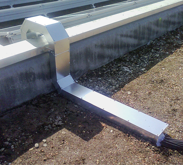 Er eignet sich ideal für elektrische Leitungen, die Brandwände überqueren, wie häufig bei Photovoltaikanlagen auf Flachdächern. Im Innern des Installationskanals ist eine wasserfeste Brandschutzschicht aufgebracht. Diese reagiert aktiv bei Feuer und Hitze, schäumt auf, stoppt die Sauerstoffzufuhr und verhindert damit die Brandweiterleitung entlang der Installationsleitungen im Innern des Kanals.