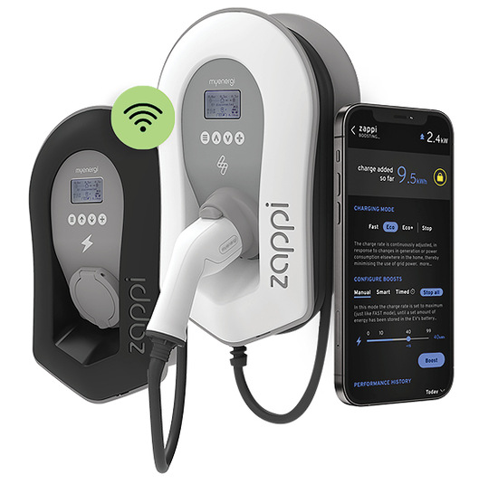 Bisher war die Zusatzkomponente Hub nötig, um alle Geräte über die Myenergi-App zu steuern und zu überwachen, wenn Hausbesitzer auf das Verlegen von Kabeln verzichten wollten. Nun kommuniziert die Wallbox über WLAN und Ethernet.