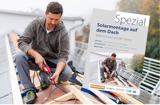 Die passenden Systeme stehen zur Verfügung. Die eigentliche Domäne der Dachprofis ist die Integration der Module in die Dachhaut. Solche Indachanlagen werden von den Handwerkern noch viel zu selten angeboten. Im aktuellen Spezial finden Sie Hinweise, wie die Dachintegration gelingt. Erfahren Sie, welche Unterstützung Sie bei der Planung und bei der Installation solcher Systeme bekommen. Das Spezial steht zum kostenlosen Download bereit.