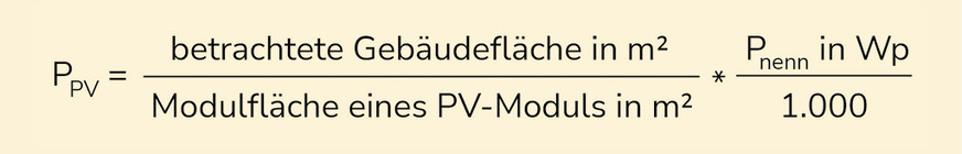 Bleibt schlussendlich die Frage: Wie viel Photovaltik passt überhaupt auf meine Gebäudefläche? Für das überschlägige Ermitteln der installierbaren PV-Leistung (PPV in kWp) genügt folgende Formel: