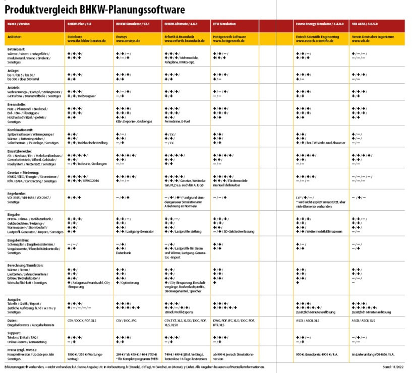 Herstellerneutrale Planungsprogramme unabhängiger Softwareanbieter, respektive Programme für die Simulation thermisch-dynamischer Prozesse ermöglichen eine präzise Auslegung, Simulation und Berechnung sowie Wirtschaftlichkeitsvergleiche von Blockheizkraftwerken und Anlagenkomponenten unterschiedlicher Anbieter. Einige dieser Programme stellt der Beitrag kurz vor und vergleicht sie in der Tabelle detailliert.