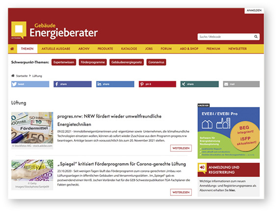 Grundlegende Informationen zum Thema finden Sie auch in unserem Dossier Lüftung mit Beiträgen und News aus dem GEB: