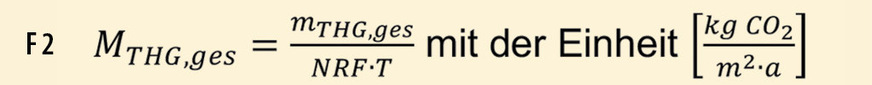 Die Treibhausgasemission im Lebenszyklus des Gebäudes ergibt sich als Summe der Emission aller Ereignisse im Lebenszyklus:
