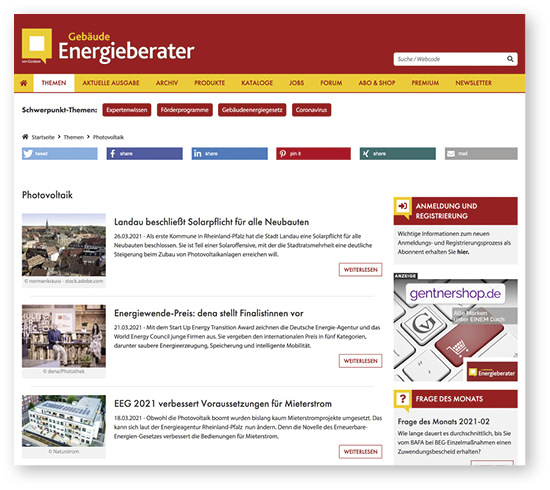 Grundlegende Informationen zum Thema finden Sie auch in unserem Dossier Photovoltaik mit Beiträgen und News aus dem GEB:
