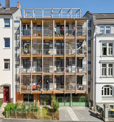 Wichtig ist dem Projektleiter der Kreislaufgrundsatz, denn eine Triq-briq-Konstruktion lässt sich theoretisch jederzeit wieder auf- und abbauen – somit ist der Rohbau komplett rückbaufähig. Neben dem Edeka-Markt wurde das Bausystem bislang nur bei einem Familienhaus in Frankfurt am Main in der Praxis getestet.