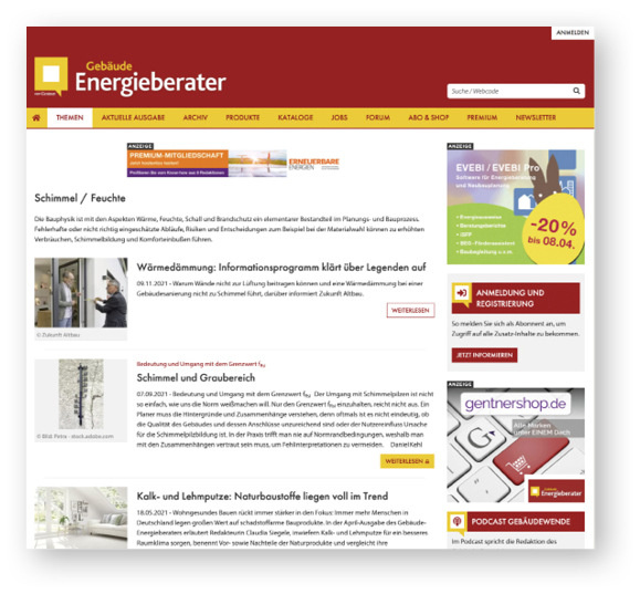 Grundlegende Informationen zum -Thema -finden Sie auch in -unserem Dossier Schimmel/Feuchte mit -Beiträgen und News aus dem GEB:
