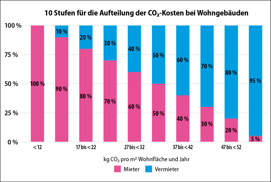 Die Brisanz liegt darin, dass Vermieter diese Steuer nur zum kleinen Teil auf Mieterinnen und Mieter umlegen können. In den meisten Fällen bleiben rund 90 Prozent der Kosten beim Eigentümer hängen. Mit jedem Anstieg der CO₂-Steuer sinkt also die Mietrendite.