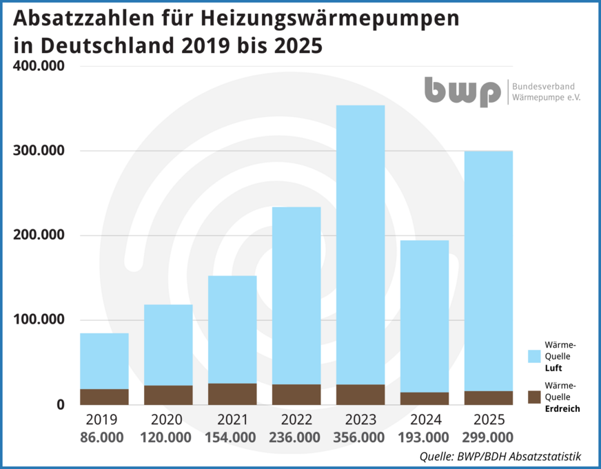 2025: Wärmepumpenabsatz steigt um 55 % auf 299.000 Geräte