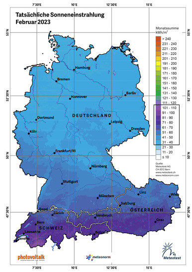 Tatsächliche Sonneneinstrahlung Februar 2023