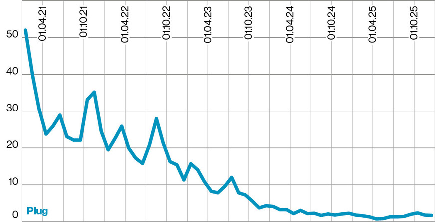 Plug Power Das US-Unternehmen zählt zu den weltweit größten Käufern von flüssigem Wasserstoff. Seit der Übernahme von United Hydrogen (2021) stellt es diesen aber auch selbst her. In den Jahren 2023 und 2024 fielen bei Umsätzen von $ 891 Mio bzw. $ 629 Mio Verluste von $ 1,37 Mrd. bzw. $ 2,10 Mrd. an. In den ersten drei Quartalen des Jahres 2025 stieg der Umsatz auf 485 Millionen US-Dollar (+11 Prozent), während der Verlust auf 786 Millionen US-Dollar (+2 Prozent) anstieg.