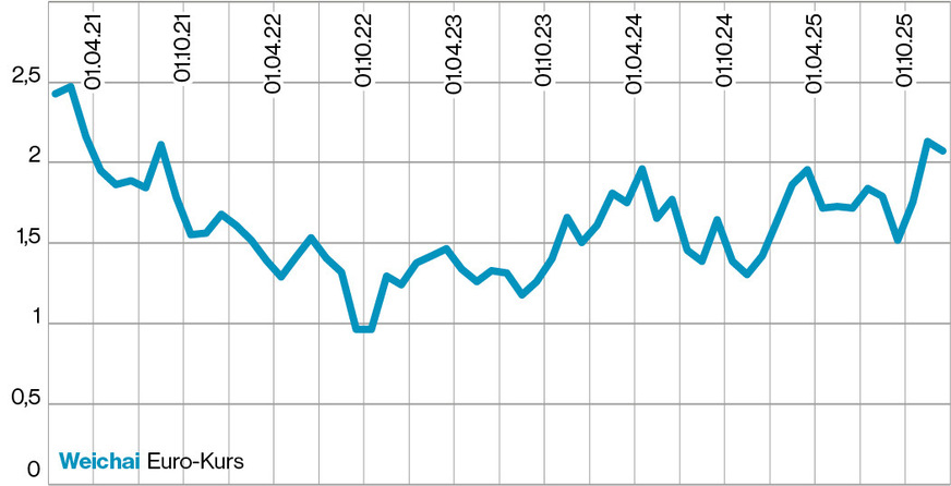 In den ersten drei Quartalen 2025 stieg der Umsatz um 5,3 Prozent auf über 170,6 Milliarden Renminbi (RMB), der Gewinn um 5,7 Prozent auf 8,9 Milliarden RMB. Weichai Power ist mit Abstand das grösste der 16 Unternehmen in der Tabelle, liegt beim Kursanstieg 2025 unter den drei besten und weist attraktive Kennzahlen auf. Aber der Wasserstoffbereich ist nicht der Hauptumsatzträger des Konzerns.
