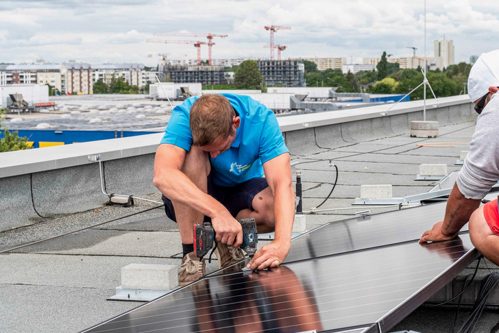 Die Voraussetzungen waren denkbar gut. Denn das neue Gebäude im Berliner Stadtbezirk Lichtenberg war von vornherein für den Bau einer Solaranlage vorbereitet. Die Wohnungsgesellschaft Gewobag konnte so die Kosten für die nachträgliche Ertüchtigung des Gebäudes vermeiden, damit dieses das zusätzliche Gewicht der Photovoltaikanlage trägt. „Für uns ist es die erste Anlage, die wir in einen Neubau integrieren, bei dem praktisch alle wichtigen Dinge von der Hausanschlusstechnik bis zur Dachkonfiguration vom Bauherrn bereits mitgeplant worden sind“, sagt Kerstin Busch, Geschäftsführerin der Berliner Stadtwerke.