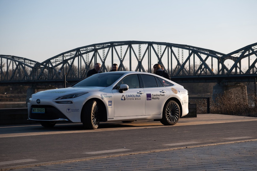 Bei der „Green Hydrogen Challenge" fuhr Piotr Rudyszyn, Experte bei Studium Wodoru, den Brennstoffzellen-Pkw Toyota Mirai von Zakopane im Süden Polens bis nach Hel an der Ostsee. Die Strecke von 800 Kilometern bewältigte das Fahrzeug mit einer einzigen Tankfüllung von fünf Kilogramm Wasserstoff. Die Serienreichweite des Toyota Mirai liegt bei rund 500 Kilometern.