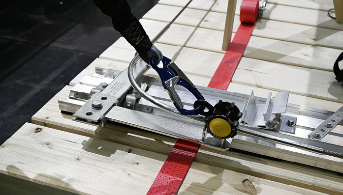 Das System ist so ausgelegt, dass es bis zu drei Handwerker absichern kann. Das Gewicht der Solaranlage inklusive Ballast reicht aus, um die entsprechenden Kräfte abzufangen. Voraussetzung ist, dass das Solarfeld mindestens 20 Module im Verbund mit einem Gesamtgewicht von 1.600 Kilogramm umfasst, um die drei Personen im Falle eines Absturzes zu halten. Um den Verbund der Basisschienen zu erhalten, müssen diese untereinander noch mit Lochblechen gesichert werden.