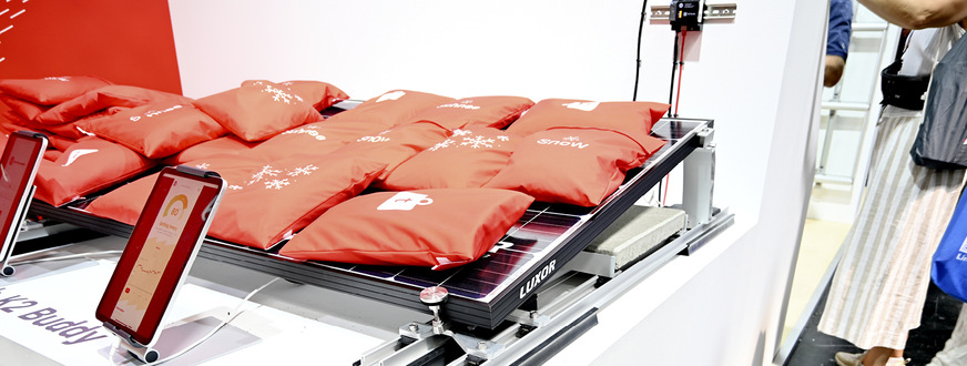 Dann können Hauseigentümer oder Handwerker tätig werden und die konkrete Situation auf dem Dach anschauen und eventuell Schnee räumen. Der Vorteil: Es wird wirklich nur dann jemand zum Schneeräumen aufs Dach geschickt, wenn es tatsächlich auch notwendig ist. Gleichzeitig wird jegliche Überlastung des Daches verhindert. „Dadurch können die Planer mit dem Gewicht der Solaranlage näher an die Resttragfähigkeit gehen. Dies macht auch Anlagen in Regionen mit höheren Schneelasten möglich, die bisher nicht gebaut werden können“, beschreibt Nadine Wade zwei weitere Vorteile des Systems. Außerdem können große Module auch in schneereichen Regionen wieder an den Ecken geklemmt werden. Im Vergleich zur sonst notwendigen Klemmung im Viertelpunkt spart das viel Geld.