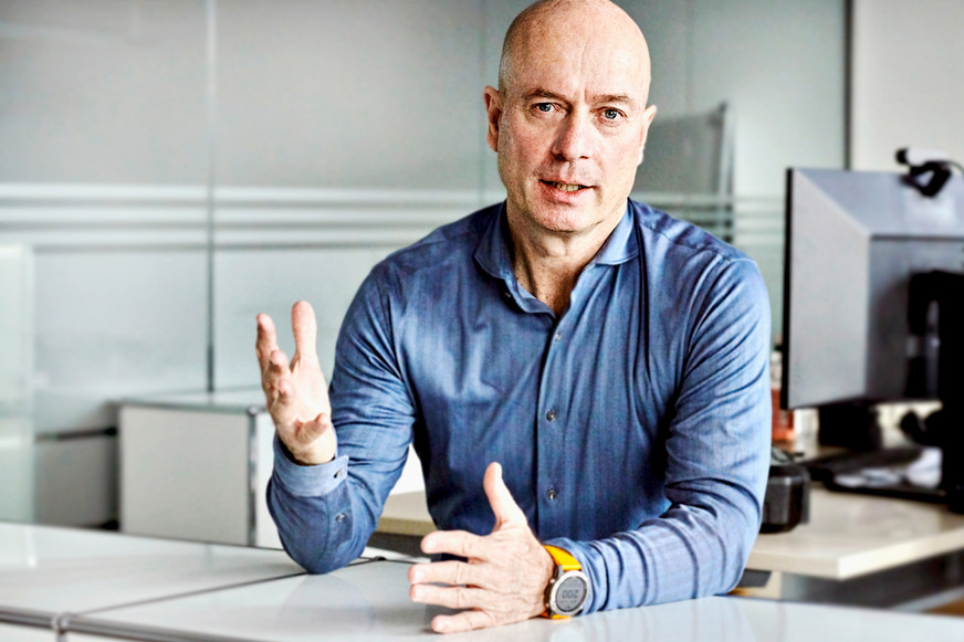 Knud Rissel, Geschäftsführer der TOPseven GmbH & Co. KG, erklärt die Funktionsweise der neuen TOPseven-Kamera im Gespräch mit Nicole Weinhold.