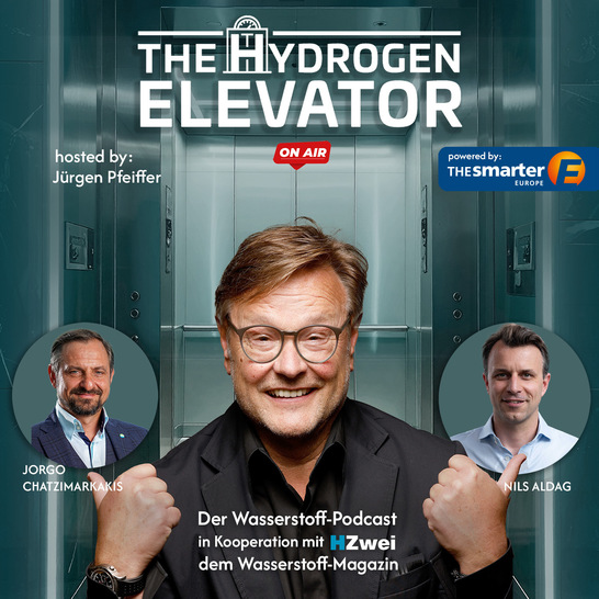 Der Podcast „The Hydrogen Elevator" erscheint jeweils am letzten Dienstag im Monat in Kooperation mit dem Fachmagazin HZwei. Die erste Episode gibt es ab dem 31. März um 8 Uhr hier.