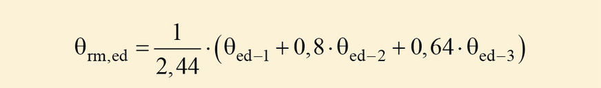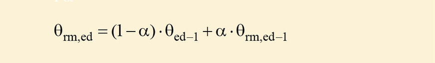 θrm,ed exponentiell gewichteter gleitender Tagesmittelwert der Außenlufttemperatur am betrachteten Tag ed in °C