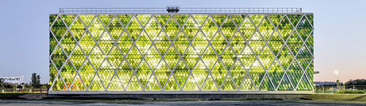 Ja, Sie sehen richtig: Das ist ein Parkhaus. Mit integrierter Energiezentrale. An einem unwirtlichen Ort. So, gleich drei Rätsel in den ersten zwei Zeilen. Beginnen wir mit der Auflösung. Der unwirtliche Ort befindet sich in Stuttgart Bad Canstatt, genauer im Neckarpark, unweit der Mercedes-Benz Arena, wo der VfB derzeit jedes zweite Wochenende gegen den Abstieg in der Bundesliga anspielt. Auf dem 22 Hektar großen Gelände, vor der Brache war’s übrigens ein Güterbahnhof, sollen bald 2000 Menschen leben und arbeiten, und im Sinne einer nachhaltigen Stadtplanung soll das neue Quartier NeckarPark sowohl energetisch als auch umweltpolitisch eine Vorreiterrolle einnehmen. Häuser mit begrünten Fassaden, versorgt mit regenerativer Energie. Die Energiezentrale steht schon, gut getarnt mit einem drum herum gebauten Parkhaus. Fragen Sie die Architekten von asp, die haben dieses Raumschiff – in Architektenspeach „ein identitätsstiftendes Gebäude“ – geplant und hier angelandet. Für die künftigen Bewohner einerseits eine Schallschutzwand zum benachbarten Cannstatter Wasen, zum anderen aber auch – neben Parkplätzen für den Benz oder Porsche – Energiezentrale für das gesamte Quartier mit round about 850 Wohneinheiten. Im Erd- und Untergeschoss der partiell mit Glasrauten beschuppten Stahlverbund-Skelettkon-