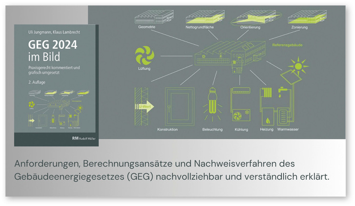 Die neue Ausgabe von GEG 2024 im Bild der GEB-Autoren Klaus Lambrecht und Uli Jungmann liefert eine detaillierte und leicht verständliche Übersicht über die komplexen Regelungen des aktuellen Gebäudeenergiegesetzes (GEG). Mit über 140 Abbildungen, zahlreichen praxisnahen Beispielen, übersichtlichen Tabellen und hilfreichen Hinweisen der Autoren unterstützt das Werk die praktische Anwendung der gesetzlichen Vorgaben. Insbesondere während der Übergangsphase, die mit der jüngsten Novellierung einhergeht, erleichtert das Buch die Orientierung. Das GEG, das nach der zweiten Novellierung im Jahr 2024 in Kraft trat, fasst die bis 2020 geltenden Vorgaben des Energieeinsparungsgesetzes (EnEG), der Energieeinsparverordnung (EnEV) und des Erneuerbare-Energien-Wärmegesetzes (EEWärmeG) zusammen. Die jüngsten Änderungen zielen insbesondere darauf ab, durch neue Vorschriften für Heizungsanlagen den Gebäudebestand in Deutschland bis 2045 klimaneutral zu gestalten. Alle Änderungen sind im Fachbuch deutlich hervorgehoben, sodass es als wichtiges Nachschlagewerk für die korrekte Interpretation und Umsetzung des Gesetzes gelten kann. jb