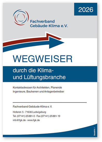 Die aktualisierte Ausgabe des Wegweisers durch die Klima- und Lüftungsbranche bietet Fachkräften aus Anlagenbetrieb, Architektur und Planung eine umfassende Übersicht über Mitgliedsunternehmen des Fachverbands Gebäude-Klima. Die Publikation unterstützt die Auswahl geeigneter Partner für spezifische Kompetenzen im Bereich Klima- und Lüftungstechnik. Neben einem alphabetischen Verzeichnis enthält das Nachschlagewerk thematische Rubriken zu Produktgruppen und Dienstleistungen, darunter Planung, Wartung und Inbetriebnahme von raumlufttechnischen Anlagen sowie Anbieter von Reinigungsgeräten und -dienstleistungen. Weitere Abschnitte stellen Ingenieurbüros, Sachverständige, wissenschaftliche Institute sowie Aus- und Weiterbildungsstätten vor. Die digitale Version der aktuellen Auflage steht kostenfrei zum Download bereit. Gedruckte Exemplare können Sie bei der FGK-Geschäftsstelle anfordern. ar