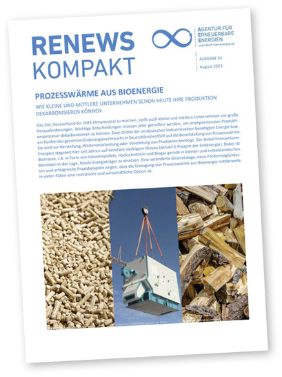 Gerade kleine und mittlere Betriebe aus Gewerbe und Industrie stehen angesichts der deutschen Klimaschutzziele zunehmend unter Druck, ihre Produktion auf emissionsarme Technologien und Verfahren umzustellen. Deshalb hat die Agentur für Erneuerbare Energien das Hintergrundpapier „Prozesswärme aus Bioenergie“ veröffentlicht. Es nennt Argumente für Biomasse im Betrieb, listet Förderprogramme und zeigt Praxisbeispiele. Prozesswärme, die zur Herstellung, Weiterverarbeitung oder Veredelung von Produkten genutzt wird, machte im Jahr 2020 rund zwei Drittel des Energieverbrauchs in der deutschen Industrie aus, 68 Prozent davon aus fossilem Erdgas und Kohle erzeugt. Um eine Umstellung auf erneuerbare Energien kommen die Unternehmen nicht herum: Die CO2-Preise nach dem Brennstoffemissionshandelsgesetz liegen bereits heute bei 30 €/t. Bis 2027 steigen sie jährlich bis auf mindestens 55 €/t. Mit der Bioenergie steht eine regional verfügbare und technisch ausgereifte Alternative mit etablierten Lieferketten bereit. Energieholz und Biogas können Prozesstemperaturen von bis zu 500 °C erzeugen. Aufbereitetes Biomethan hat Erdgasqualität und erlaubt Temperaturen von über 1.000 °C. jb