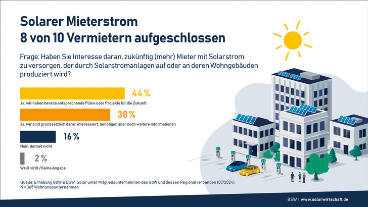 Seit der Einführung der Option der gemeinschaftlichen Gebäudeversorgung durch das Solarpaket im Frühjahr 2024 können Mieterinnen und Mieter Solarstrom einfacher und günstiger nutzen. Die neue Regelung befreit die PV-Stromlieferung von vielen Stromlieferantenpflichten. Das gilt für private oder gewerbliche Stromverbraucher innerhalb eines Gebäudes. Der Bundesverband Solarwirtschaft (BSW) und der Bundesverband deutscher Wohnungs- und Immobilienunternehmen (GdW) erstellten einen Leitfaden, der Planende und Betreibende unterstützt. Er erklärt die gesetzlichen Vorgaben, beschreibt organisatorische Abläufe und gibt konkrete Anleitungen zur Umsetzung. Neben den rechtlichen Rahmenbedingungen enthält er eine Mustervereinbarung mit ausführlichen Erklärungen sowie eine Beschlussvorlage für Wohnungseigentümergemeinschaften. Das Dokument erläutert die rechtlichen Grundlagen, beschreibt die einzelnen Umsetzungsschritte und hilft bei der Planung. Es enthält zudem rechtsichere Musterverträge und Beschlussvorlagen. ar