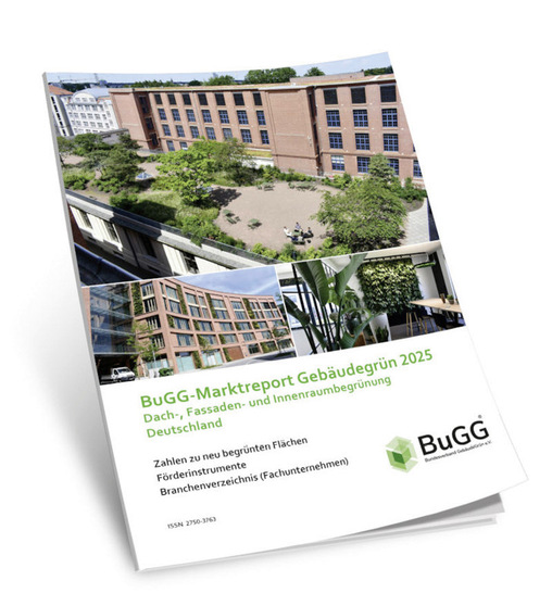 Gebäudebegrünung leistet einen wichtigen Beitrag zur Klimaanpassung, denn sie schützt vor Überflutungen, mindert Hitze und schafft Lebensräume. Der BuGG-Marktreport Gebäudegrün 2025 des Bundesverbands GebäudeGrün (BuGG) bietet eine detaillierte Übersicht zur Dach- und Fassadenbegrünung in Deutschland. Mit rund neun Millionen Quadratmetern neu begrünten Dachflächen im Jahr 2024 und 137.100 m² Fassadenbegrünung zeigt der Bericht das Wachstumspotenzial auf. Dennoch bleiben 87 % der neuen Flachdächer ungenutzt. Der 164-seitige Report zeigt: Das Thema Gebäudebegrünung ist einerseits angekommen, wie die über die Jahre hinweg steigenden Zahlen der neu begrünten Flächen als auch der fördernden Städte verdeutlichen, andererseits sind wir noch weit weg von einer Selbstverständlichkeit der Gebäudebegrünung. Anhand von mehr als 85 Abbildungen und 37 Tabellen ergibt sich eine gute Marktübersicht, die als kostenloser Download zur Verfügung steht. ar
