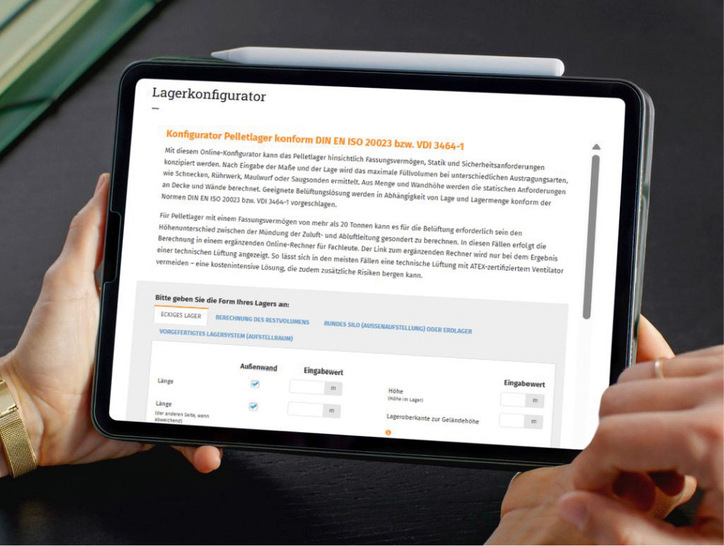 Eine Pelletsheizung arbeitet nur dann zuverlässig, wenn auch das Brennstofflager richtig geplant ist. Das Deutsche Pelletinstitut (Depi) hat seinen kostenfreien Online-Lagerkonfigurator aktualisiert und um neue Funktionen erweitert. So zeigt er jetzt die optimale Position von Befüllleitungen sowie die statische Auslegung an. Außerdem enthält er erläuternde Hinweise, die helfen, typische Planungsfehler zu vermeiden. Mit der neu hinzugefügten Berechnung des Restvolumens lässt sich vor der Umsetzung ermitteln, welche Pelletsmenge ausgetragen werden kann. Ein zentraler Bestandteil des aktualisierten Lagerkonfigurators ist die Auslegung der Belüftung. Abhängig von Lagermenge und Einbaulage schlägt das Tool geeignete Lösungen vor – unter Berücksichtigung der geltenden Vorgaben der DIN EN ISO 20023 sowie der VDI 3464-1. Für Brennstofflager mit einem Fassungsvermögen von mehr als 20 Tonnen kann es erforderlich sein, den Höhenunterschied zwischen Zu- und Abluftöffnung gesondert zu berechnen. In diesen Fällen verweist der Online-Lagerkonfigurator auf einen ergänzenden Online-Rechner für Fachanwender. Die Ergebnisse der Berechnung können als PDF-Datei gespeichert und den Planungsunterlagen beigefügt werden. Das Tool dokumentiert die gewählten Lager- und Belüftungslösungen und ist Teil des kostenfreien Online-Serviceangebots des Depi. ar