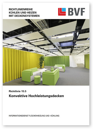 Hatten früher abgehängte Decken lediglich eine optische Funktion, indem sie zum Beispiel Betondecken, Mauerwerk oder Installationen verkleideten, werden sie heutzutage immer häufiger als multifunktionale Ebene konzipiert. Als Energiedecken können sie Räume durch Strahlungsaustausch und Konvektion kühlen – ohne dass Ventilatoren oder Raumklimageräte zum Einsatz kommen müssen. Das Prinzip: Die erwärmte Raumluft steigt natürlich nach oben, an der Decke montierte Wärmeübertrager kühlen sie, sodass sie langsam wieder nach unten sinkt. Wie konvektive Hochleistungsdecken auf diese Weise hohe Wärmelasten abführen können, zeigt der Bundesverband Flächenheizungen und Flächenkühlungen in seiner Richtlinie 15.5 „Konvektive Hochleistungsdecken“. Er erläutert, dass offene Deckenkonstruktionen anders als geschlossene Kühldecken auch die dem Raum abgewandte Seite zur Kühlung und Heizung nutzen können. Ihre Leistung summiert sich aus Strahlung und Konvektion und kann bis zum doppelten einer geschlossenen Kühldecke betragen. Die Systeme eignen sich daher für hohe Räume, beispielsweise Ausstellungsräume, Fernsehstudios oder Flughafenhallen. Man unterscheidet sichtbare Systeme und verdeckte Systeme oberhalb eines offenen Deckensystems. jb