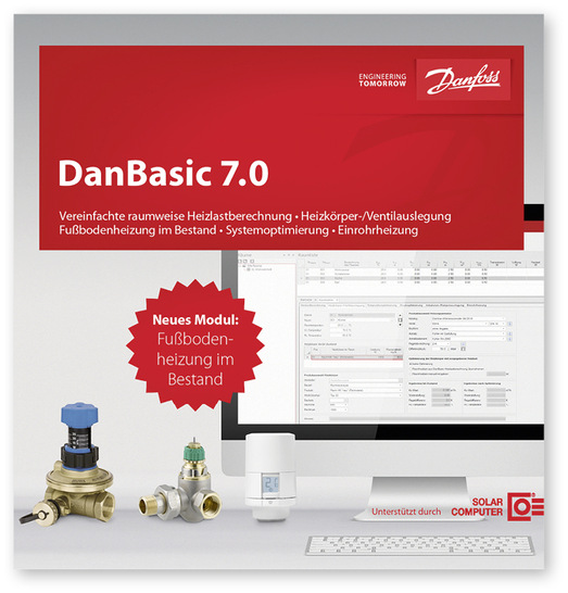 Danfoss stellt DanBasic 7 für den hydraulischen Abgleich von Heizungssystemen vor. Die Lösung wurde speziell für die Berechnung bestehender Heizungsanlagen in Ein- und Zweifamilienhäusern sowie kleineren Wohneinheiten entwickelt, kann aber auch zur Auslegung von Neuanlagen eingesetzt werden. Sie unterstützt sowohl Berechnungen unter Gleichsetzung von Heizlast und Heizleistung (VdZ-Verfahren A) als auch BEG-förderfähige Systemauslegungen unter Einbeziehung der vereinfachten raumweisen Heizlast (VdZ-Verfahren B). Zum Funktionsumfang gehören Module für Heizlastberechnung, Heizkörper- und Ventilauslegung, Armaturen- und Pumpenauslegung sowie Einrohrberechnung, aber auch Module für Temperatur- und Druckoptimierung. Weiterhin enthalten sind Komfortfunktionen wie Ventil-Schnellauslegung und Datensatz-Einlesen nach VDI 3805, Datenorganisation nach Gebäude- bzw. Raumstruktur sowie Individualkonfigurationen für Projektanlage und Dokumentationsausgabe. Gegenüber der Vorgängerversion bietet DanBasic 7 nun erstmals auch ein Modul für die Berechnung bestehender Fußbodenheizungen unter Berücksichtigung der DIN 1264. pgl