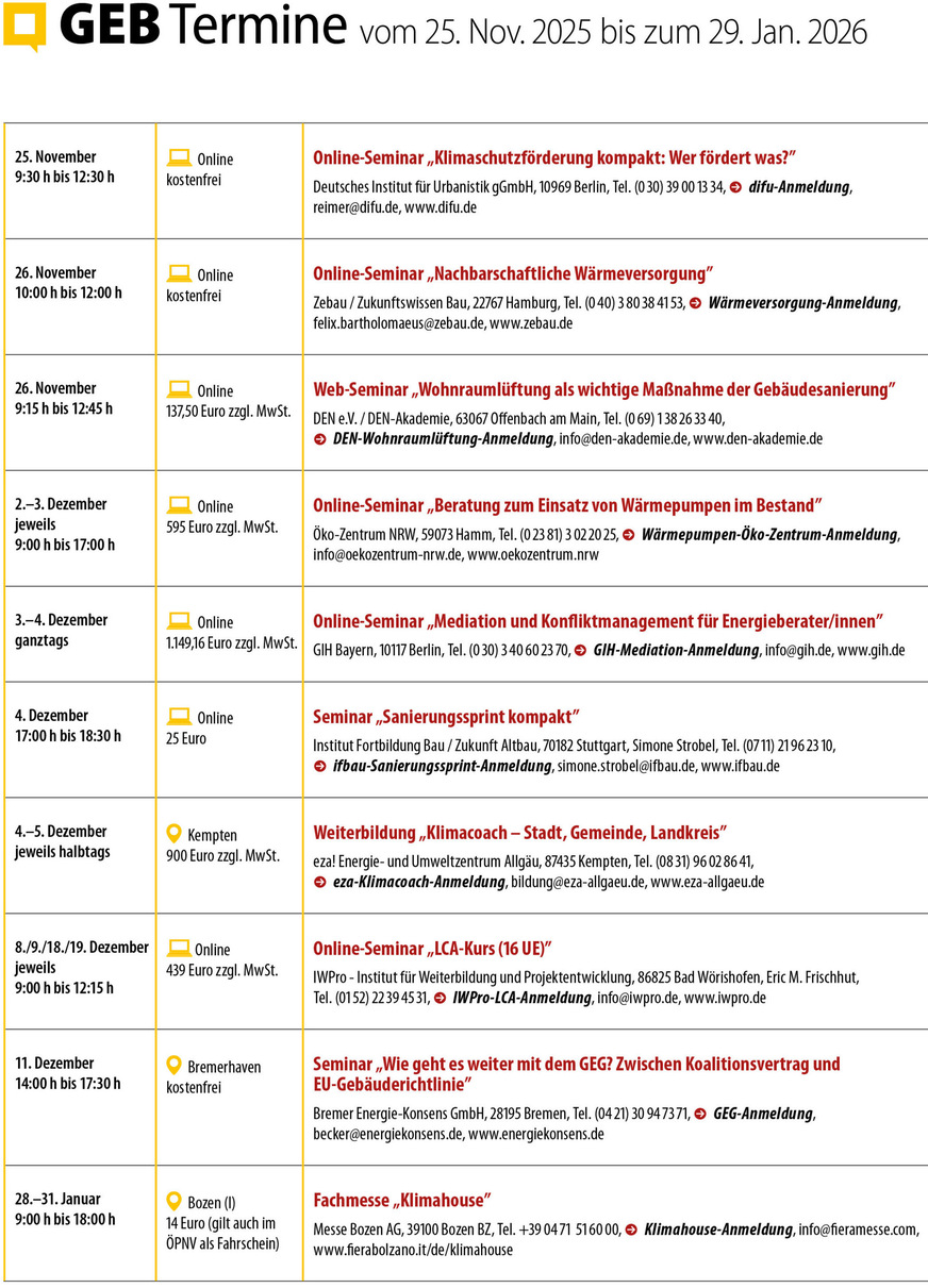 Die Blätter fallen, das Jahr neigt sich dem Ende zu – wer noch Budget übrig hat, dem sei das GEB-Webinar „Heizungsmonitoring in der Praxis“ am 25.11. ans Herz gelegt.