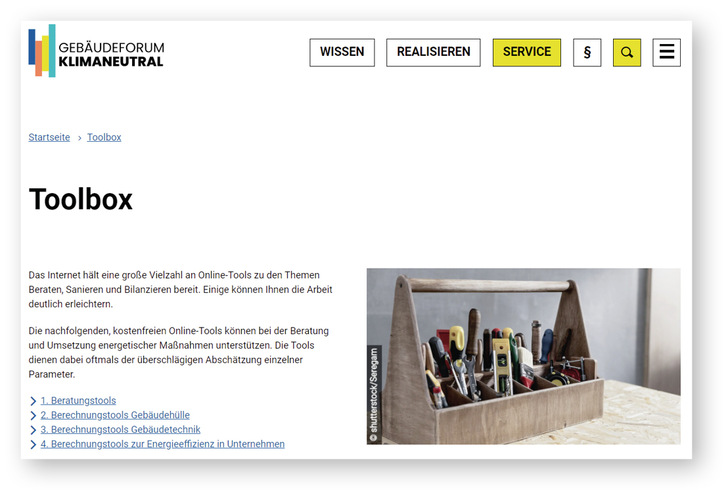 Mit dem Gebäudeforum hat die Deutsche Energie-Agentur (dena) ein Webportal geschaffen, das für Profis relevante Informationen zum klimaneutralen Bauen zusammenführt. Mit ihm will sie zum Erreichen der ambitionierten Klimaziele beitragen. Im Gebäudeforum finden Expertinnen und Experten wichtige Hinweise zum Energieausweis, zu Förderprogrammen, zum Ordnungsrecht oder zum individuellen Sanierungsfahrplan sowie hilfreiche Werkzeuge wie ein globales Kataster für verbaute Materialien. Sie können sich über die Infoplattform auch vernetzen. In sogenannten Innovationswerkstätten können sie Ideen entwickeln, ausprobieren und verbessern. „Das Forum dient als Anlaufstelle, um Wissen auszutauschen und von den unterschiedlichen Kompetenzen zu profitieren“, informiert die dena. Im Gebäudeforum finden Sie außerdem beispielhafte Bauvorhaben, die zur Nachahmung anregen sollen. In der Berufspraxis besonders helfen dürften die Links zu Berechnungstools, unter anderem zur PV-Anlagenplanung, zur Berechnung der Jahresarbeitszahl einer Wärmepumpe und zur Ermittlung möglicher Energieeinsparungen durch Gebäudeautomation. jb