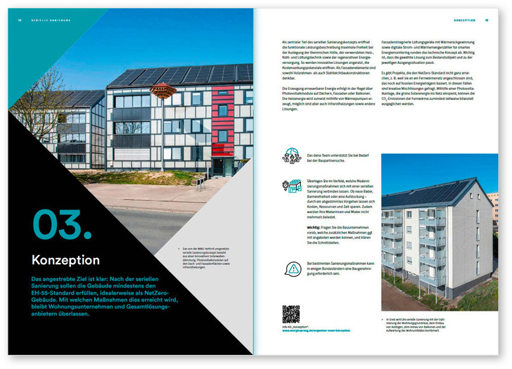 Mit seriellen Sanierungen können Wohnungsunternehmen ihren Bestand schnell, wirtschaftlich und mieterfreundlich auf Klimakurs bringen. Das Sanierungskonzept kombiniert digitale Planung mit automatisierter Vorfertigung und standardisierten Prozessen. Auf diese Weise lassen sich mit weniger Fachkräften mehr Gebäude in kürzerer Zeit energetisch modernisieren. Die Publikation Serielle Sanierung zeigt, worauf es bei der Planung, Umsetzung und Evaluierung ankommt. Erarbeitet haben ihn die Deutsche Energie-Agentur (Dena) gemeinsam mit dem GdW Bundesverband deutscher Wohnungs- und Immobilienunternehmen. Der 36-seitige Wegweiser führt in acht Kapiteln Schritt für Schritt durch den seriellen Sanierungsprozess und beantwortet dabei die wichtigsten Fragen. Jedes Kapitel ist mit einer Toolbox an weiterführenden Hintergrundinformationen – Best Practices, Checklisten, Lessons Learned und Musterverträge – verlinkt, die in regelmäßigen Abständen aktualisiert und kontinuierlich erweitert werden. Die Publikation ist Teil einer breit angelegten Informationskampagne rund um das serielle Sanieren. Mit einem vielfältigen Angebot an Factsheets, Filmen, Fachpublikationen, Veranstaltungsformaten und Exkursionen unterstützt das Dena-Marktentwicklungsteam Akteure aus der Wohnungs- und Bauwirtschaft beim Einstieg in den innovativen Sanierungsansatz. jb