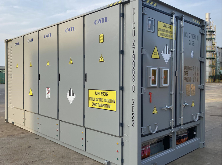 Das flüssigkeitsgekühlte System EnerC vom chinesischen Hersteller CATL ist eine integrierte Speicherlösung mit einer innovativen Kühlung. Die Cell-to-Pack-Lösung, kurz als CTP bezeichnet, vereint das flüssigkeitsgekühlte Batteriesystem mit einer Temperaturspreizung zwischen den Zellen von maximal bis zu fünf Grad Celsius. Zudem ist das System ein Notstromlieferant mit integriertem Feuerlöschsystem und einer Steuerung kompakt in einem Container.