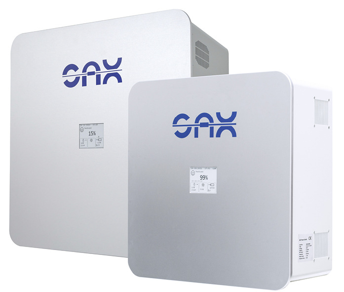 Das Speichersystem von Sax Power mit integrierter Wechselrichterfunktion kommt nun in einer Version mit mehr Kapazität: Das neue Modell speichert 7,7 Kilowattstunden und ist auf bis zu 23 Kilowattstunden erweiterbar.