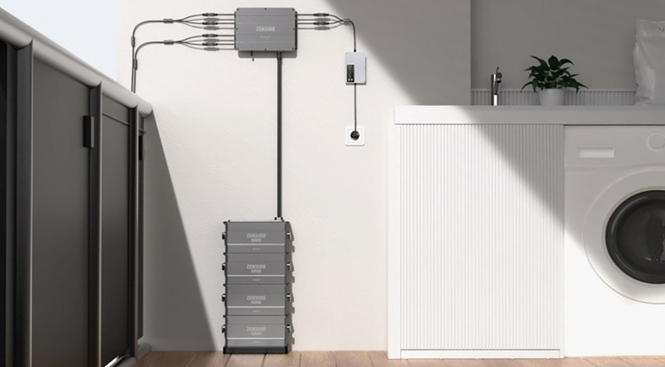 Das Start-up Zendure aus in den USA, China und Japan bringt mit Solarflow ein Plug-and-play-Speichersystem für Balkonanlagen auf den Markt. Der Solarflow besteht aus einem PV-Hub sowie bis zu vier Batterien und ist mit gängigen Solarpaneelen kompatibel. Angeschlossen werden die Solarpaneele an einen Mikrowechselrichter. Die Speicherkapazität liegt bei 3,8 Kilowattstunden. Eine einzelne Batterie hat eine Kapazität von knapp einer Kilowattstunde und lässt sich mit bis zu drei weiteren Batterien durch kabellose Stapelung verbinden.