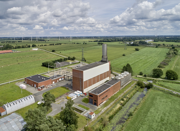 Denn in diesen künstlichen Hohlräumen, entstanden durch Salzausspülungen, kann Gas gespeichert werden, Erdgas, Wasserstoff oder auch einfach nur Luft. Und dies ist noch eine Besonderheit der Wesermarsch: In Huntorf befindet sich Europas einziges Druckluftenergie-Speicherkraftwerk, auf Englisch: Compressed Air Energy Storage (CAES).