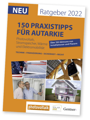 Die Redaktion unseres Schwestermagazins photovoltaik hat den Ratgeber 222 Tipps für Autarkie erstellt. Darin informiert sie praxisnah über Photovoltaik, Stromspeicher, elektrische Heizsysteme und E-Mobilität. In der neuen Auflage mit 185 Seiten berichtet sie außerdem über Techniktrends für mehr...