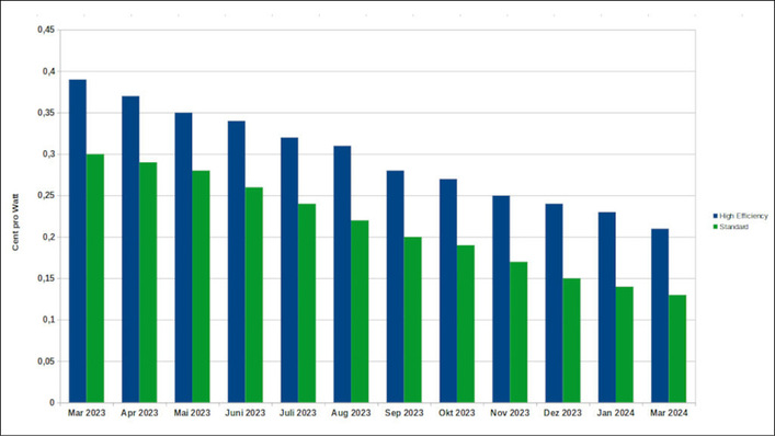 Die Großhandelspreise für Solarmodule sind weiterhin im Keller. Zwar werden die Standardmodule für den gleichen Preis gehandelt wie vor vier Wochen. Doch zuvor hatten sich die Preise in diesem Segment im Vergleich zum Mai 2024 nochmals um ein Cent pro Watt abgesenkt. Wurden sie zu diesem Zeitpunkt...