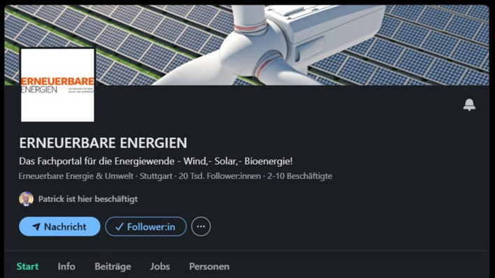 Die Unternehmensseite von ERNEUERBARE ENERGIEN hat bei LinkedIn 20.000 Follower erreicht. Jetzt auch folgen und zu aktuellen Themen der Energiewende mitdiskutieren.
