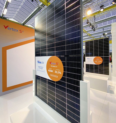 Für ästhetische Hausdachlösungen präsentiert Trina Solar sein vollschwarzes PV-Modul Vertex S+ 450 W in einem komplett schwarzen Design. Neben schwarzen Zellen mit besonders dünnen Busbars setzt der Hersteller schwarze Rahmen und ein schwarzes Einkapselungsmaterial ein. Die vollschwarze Farbgebung...