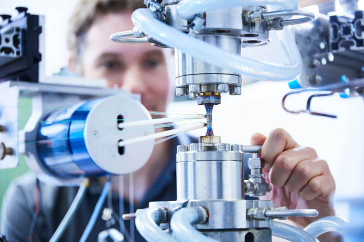 Die zentrale Herausforderung: Herkömmliche Wasserstoffdruckkammern lassen sich nicht mit den hohen und wechselnden Betriebstemperaturen kombinieren, wie sie in Turbinen und Motoren auftreten. Die Freiburger Wissenschaftler setzen daher auf Hohlproben mit einer innenliegenden Bohrung. Durch diese strömt Wasserstoff, während die Probe von außen thermomechanisch belastet wird. So lassen sich Wasserstoffdruck, Temperaturänderungen sowie Zug- und Druckbelastungszyklen separat einstellen und verschiedene Betriebsfälle abbilden.