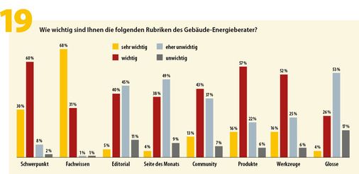 Dass die Beteiligung so groß war, geht auch auf die mediale Unterstützung durch die Partnerorganisationen zurück – die Energie- und Umweltzentren Allgäu und am Deister, den GIH Bundesverband, das Ökozentrum NRW, Zebau in Hamburg und Zukunft Altbau in Baden-Württemberg. Von einigen der Partner kamen auch Rückmeldungen zum Ergebnis, die in die nachfolgende Analyse eingeflossen sind. Die GEB-Redaktion bedankt sich ausdrücklich fürs Mitmachen und die Unterstützung!