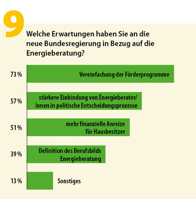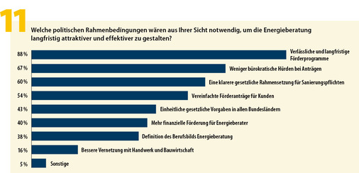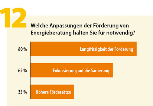 Dass letztere in der Praxis als überbordend und geradezu hinderlich für die Energieberatung empfunden werden, zeigt auch der Wunsch nach geringeren bürokratischen Hürden bei Anträgen und klareren gesetzlichen Rahmensetzungen für Sanierungspflichten. Die Branche ist – wie auch ihre Kunden – schlichtweg genervt von dem Hin und Her der Politik bei der energetischen Sanierung, dem Vor und Zurück bei den Förderprogrammen und dem Chaos bei der Antragstellung.