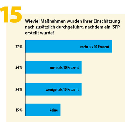 Dass der individuelle Sanierungsfahrplan (iSFP) Einzelmaßnahmen nur unwesentlich forcieren mag, überrascht hingegen wenig, denn hier geben schlicht das verfügbare Budget und private Situationen den Rahmen vor.