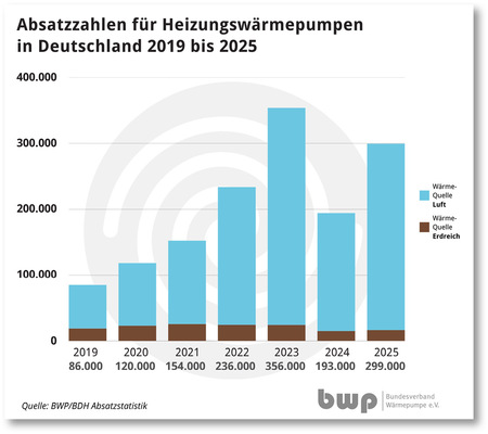 Nun die gute Nachricht: Die Hersteller und Anbieter von Wärmepumpen meldeten 2025 ordentliche Zuwächse. 299.000 Aggregate wurden in Heizsysteme eingebaut, 55 Prozent mehr als im Vorjahr. Die Zahl der Förderanträge stieg gleichfalls deutlich an.